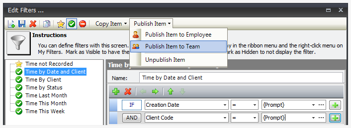 - Publish Item to Employee - the filter can be seen and used by only the employee(s) you designate.