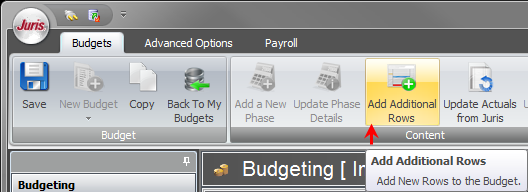 Remember that each Budget Type is different. When using the Add Additional Rows function it launches the associated type window to add the appropriate rows.