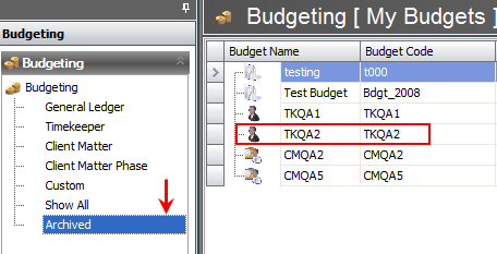 The budget will be moved to the Archived category. Click on the Archived category in the Budgeting node to view it.