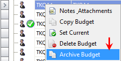 If you do not want to delete a budget but want to remove it out of the main category list, you can utilize the Archive function to place the budget in the Archive category. To Archive a budget, right-click on the budget and select Archive Budget.