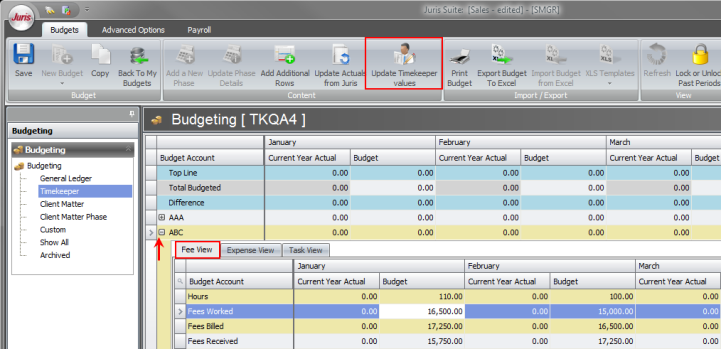 - While in the Fee tab, click the Update Timekeeper values button on the Content tool ribbon.