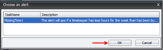 - Select an appropriate Alert from the Alert window.