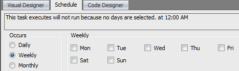 - Weekly - Monday through Sunday are choices. You can select as many as necessary.