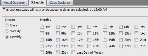 - Monthly - Allows you to select days of the month.
