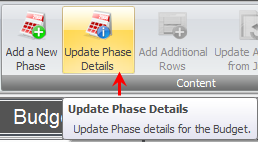 While in a Client Matter Phase budget, click the Update Phase Details button on the Content tool ribbon.
