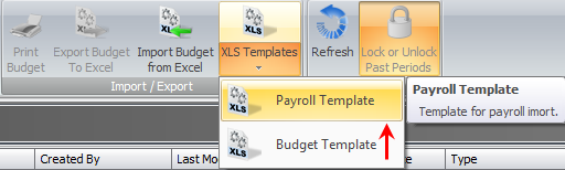 To help ensure successful importation of Payroll and Budget information, the XLS Templates function allows you to create .xls files based on the column names. Currently, you can create two template types: