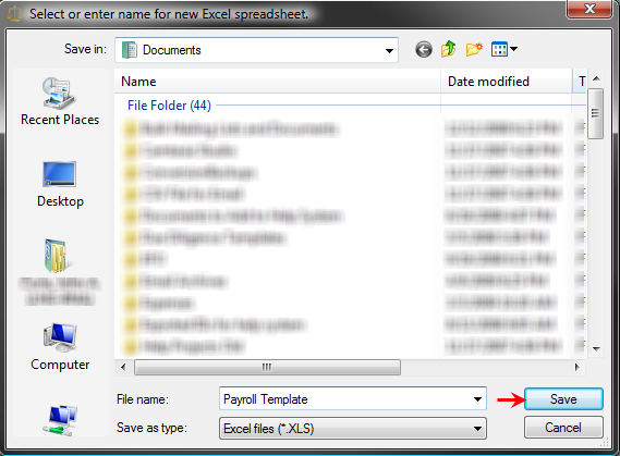 - Click the XLS Templates button and select Payroll Template.