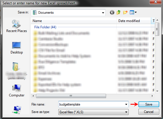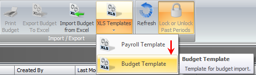 - Click the XLS Templates button and select Budget Template.