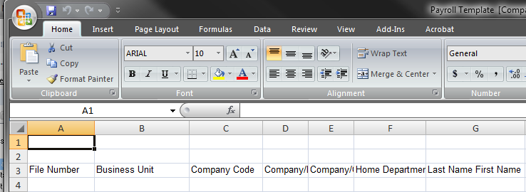 For a successful payroll import, the minimum fields to be filled are File Number and Name. It is best practice to complete all the fields in the template that are used by your payroll system.