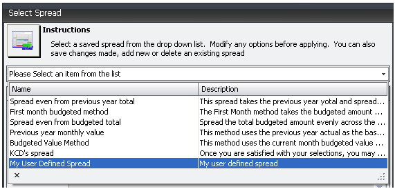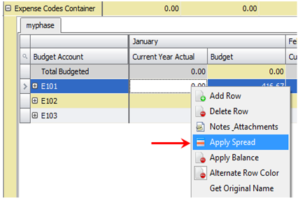 - Click Apply to apply the new spread to the current budget.