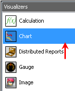 - Select the appropriate Visualizer with the left mouse click and drag it to the desired location on the Display Grid. You will see a small plus sign next to your cursor when dragging the Visualizer. For this example, the first Visualizer is Chart.
