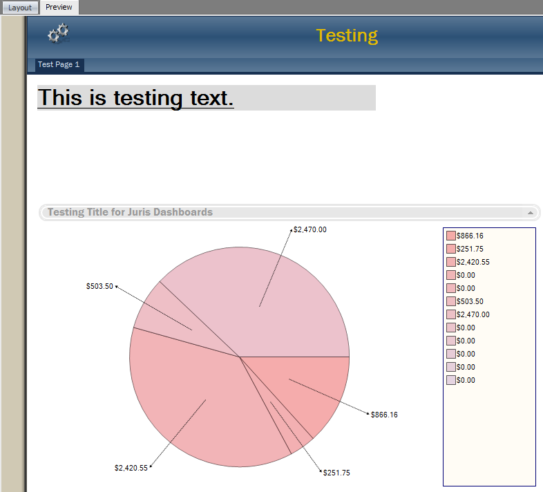 - Once you have the appropriate selections for the Query and the values selected, you can click the Legend tab. The Legend tab allows you display and format a Legend. This is an optional feature and does not affect the rendering of the Dashboard Visualizer. Features available are the following: