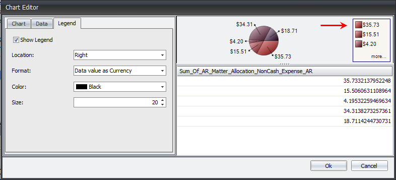 Each adjustment made to the Legend is reflected in the Preview section of the Chart Editor. This allows to quickly view any changes made.