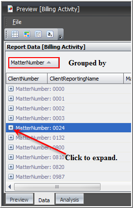 When you expand the group, the data will be displayed only for that grouping.