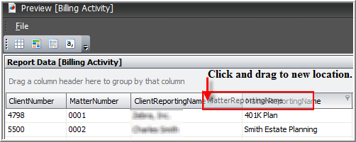 - If you need to reorganize a column that is not initially displayed, you will need to move it more than once while using the scroll bar to find the appropriate location.