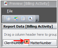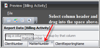 You can also group your report data by column. The Data tab allows grouping and sub-grouping by dragging and dropping the column headers in the space above. The first column header you drag into the space will be the initial grouping. Any that are added afterward become sub-groupings. To group the Data headers, perform the following: