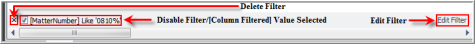 After the sort filter has been applied and the display has changed, the bottom of the display will reflect the filters are being used. You can delete and disable the filter. You also have the option to Edit Filter in the lower right corner of the display. If you want to edit the filter applied, click the Edit Filter button.