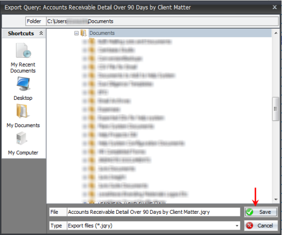 - Select a location to save the Query. Be sure the location can be accessed by the people you need to share it with.