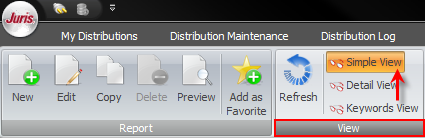Navigate to the View section within the My Reports function on the toolbar. By default, the view is set to Simple.