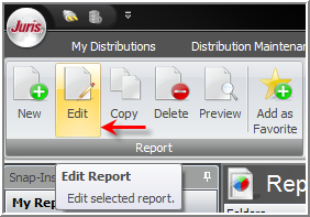 - Highlight the report you want to Edit and click the Edit button on the Report ribbon. Alternatively, you can right click the report and select Edit.
