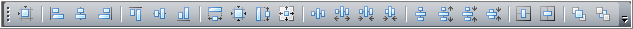 To Grid, Vertical (Left, Center, and Right) Align, Horizontal (Top, Middle, Bottom) Align, Height and Width (both) spacing adjustments, Spacing Adjustments (Make Equal, Increase, Decrease, Remove), Horizontal and Vertical Centering, Bring to Front and Send to Back
