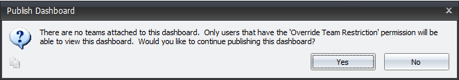 If you have not placed any Assigned Teams on the Dashboard, an override window prompts you to continue or stop. Click Yes to proceed or No to cancel.