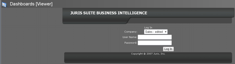 If you have logged out or are accessing the Dashboard site remotely, you will need to enter your credentials to log in. Select the Company if there is more than one. Enter your User Name and Password. Click the Log In button.