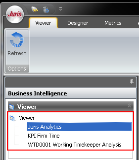 When you first launch Business Intelligence, the default function is the Viewer. The purpose of the Viewer is to display Published Dashboards. It is a browser with some simple functionality. It is reading the information placed on the Dashboard web site. If you are not on the Viewer node and want to return to it, perform the following: