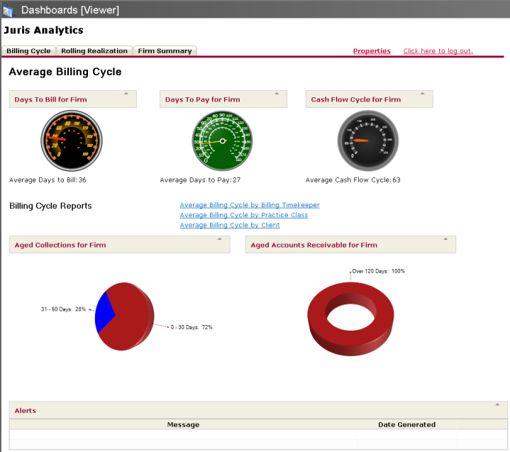 Within the display area, there is other functionality. Depending on the Dashboard, there may be graphs, gauges, links to reports, and alerts. You can use your mouse cursor and hover over any of the elements of the Dashboard and get a view of the parameters used for that Visualizer.