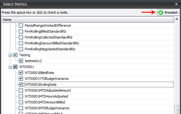 - After selecting the appropriate Metrics, click the Proceed button.