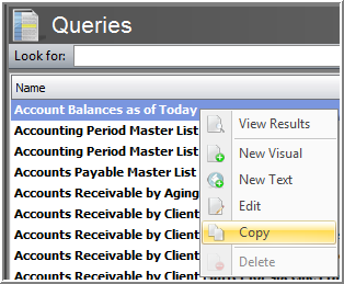 - While in the Query snap-in, right click on the query you want to copy and select Copy. You can also highlight the query and click the Copy button in the tool bar.