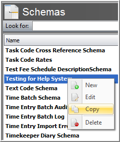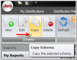 At times it may be necessary to make adjustments to an existing Schema. However, you cannot alter existing Schemas that come with Juris Suite. If you need to make changes to a Juris Suite schema or want to make changes to a newly created schema but keep the original, use the Copy Schema function. To copy a schema, perform the following: