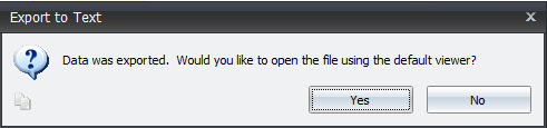 - After the file has been saved, a view dialogue window will appear asking you if you want to view the report in the exported format. Click the appropriate button.