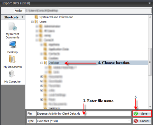 - The Export Data (Excel) window will launch prompting you to enter a name for the file. Enter the file name.