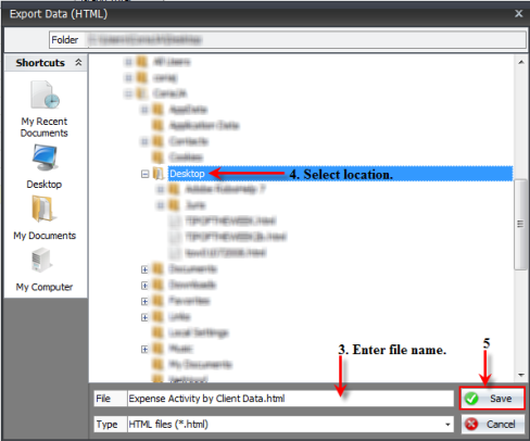- The Export Data (HTML) window will launch prompting you to enter a name for the file. Enter the file name.