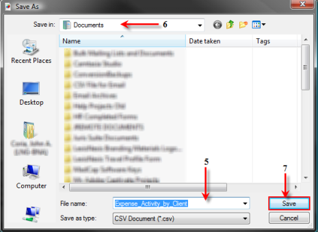 - The Export Data (CSV) window will launch prompting you to enter a name for the file. Enter the file name.