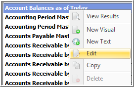 - While in the Query snap-in, right click on the query you want to change and select Edit. You can also highlight the query and click the Edit button in the tool bar.