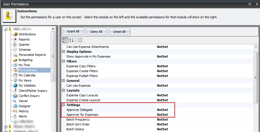 - Grant - Allows the user to set an Approver and Delegated Approver.