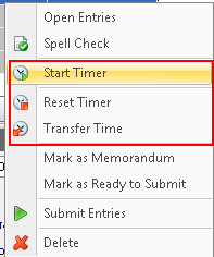 - The stopwatch functions are located by right-clicking while within the Hours Worked field of the Time Entry Grid form.