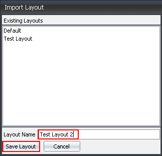 - The Import Layout window will appear and prompt you to name the layout. Enter an appropriate layout name and click the Save Layout button.