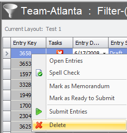 Deleting an expense entry is simple. select the appropriate entry. Click the Delete button in the Expense tool ribbon. Click the OK button on the confirmation window.