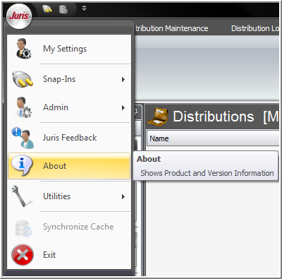 - Select the About function from the Juris button.