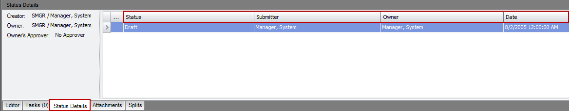 In the My Time Status Details tab on the lower portion of the form, you can view the Status, Submitter, and Owner of the time entry.