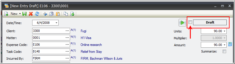 - Determine if the expense is a Draft. If it is a Draft, place a check in the Draft check box.