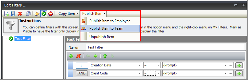 Publish to Team - Allow the entire team to access and use the filter.