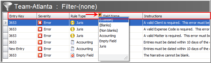 The flexibility in Juris Suite allows you to create custom filters. This is useful for arranging to reflect your display preferences. To create a custom filter perform the following: