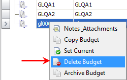 To remove a budget from the list, right-click on the budget and select Delete.